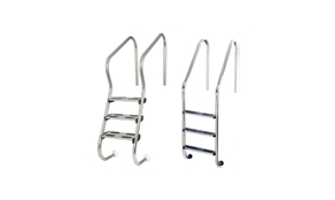 Escadas em inox facilitam o acesso á piscina sendo também um complemento estético.